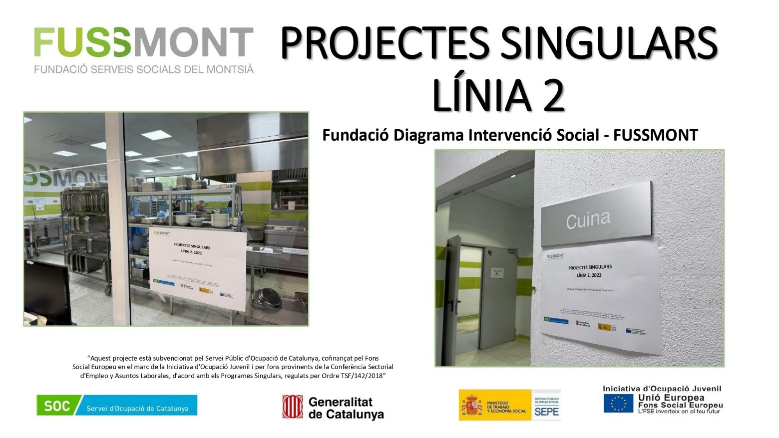 Gràcies a aquest projecte, una persona jove derivada per la Fundació Diagrama es va incorporar durant 8 mesos a l’equip de cuina i càtering de FUSSMONT, desenvolupant tasques relacionades amb la preparació i distribució d’àpats. Aquesta col·laboració té com objectiu millorar les competències professionals de la participant, sinó també facilitar-li una experiència laboral en un entorn inclusiu i d’acompanyament.